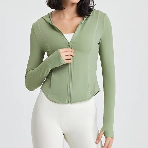 2Pcs Womens Fitness Long Sleeve Zipper Drawstring Jacket